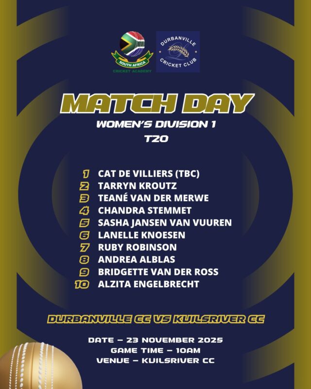 Come show your support and back the ladies as they represent the Durbanville Cricket Club with pride! Let’s bring the energy!